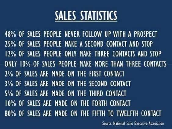 En als slechts 10 procent van de salespersonen meer dan 3 contactmomenten weet te leggen of krijgen dan weet je dat er eigenlijk nog HEEL VEEL KANSEN liggen! Pak op die telefoon of maak een funnel en kom in contact met potentiële klanten…